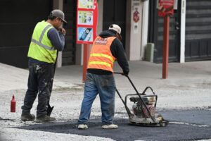 En compañía de los secretarios de Obras Públicas del Municipio, Eusebio Alfaro Reyna, y del Ayuntamiento, Hugo Reséndez Silva, verificaron el proceso de reparación y calidad de restauración de la carpeta asfáltica dañada por el constante