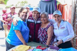 Entre abrazos y apretones de mano, fue recibido, junto a su esposa Lucy de Gattás, en los más de 120 puestos de venta donde recibió de parte de comerciantes y clientes peticiones referentes al servicio de agua, limpieza, bacheo y alumbrado público en el entorno del mercado rodante que es visitado por más de 15 mil victorenses.