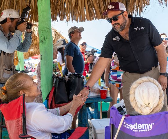 Ahí, el titular de Turismo recibió lo mismo los agradecimientos por contar con una playa incluyente con los anfibios que son adaptados para que quienes tengan alguna dificultad para caminar, así como la buena seguridad que brinda la entidad y que se nota en las carreteras con presencia de patrullas, así como en playa.
