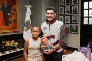 Como muestra de cariño, la niña entregó al presidente municipal un peluche llamado “Beto”, su compañero durante más de tres años, un detalle que refleja la confianza y el afecto de la niñez matamorense hacia su gobierno.