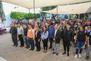Nacional de Comercio local, presidió el evento protocolario en la explanada de la Presidencia Municipal, donde se instalaron módulos informativos para ocupación laboral.