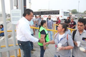 Cd. Victoria. – A temprana hora, el candidato a presidente municipal de Morena, Lalo Gattás, visitó este martes a trabajadores y dirigentes del sindicato gremial de empresas maquiladoras para exponer el proyecto con que dará continuidad a la transformación de Victoria.